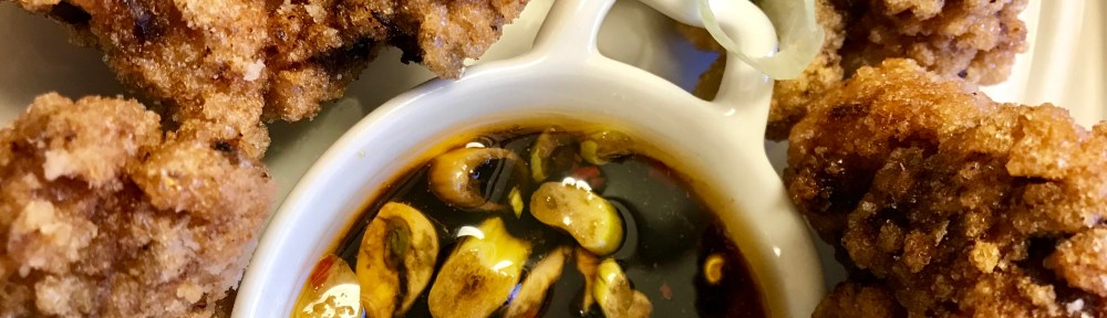 I found this recipe on a great website, “Eat the love”, and it’s perfect. My only addition is the dipping sauce. I’m hope that I can also find the sweet potato starch he uses, but so far I’ve only been able to find regular potato starch.